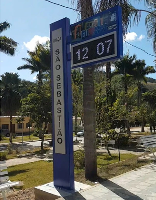 Com fabricação própria, personalizamos o design para se adequar ao projeto urbano ou identidade visual da cidade ou empresa. Os modelos contam com display digital para temperatura e hora, podendo incluir também mensagens institucionais ou de utilidade pública, além de iluminação para alta visibilidade, inclusive à noite.